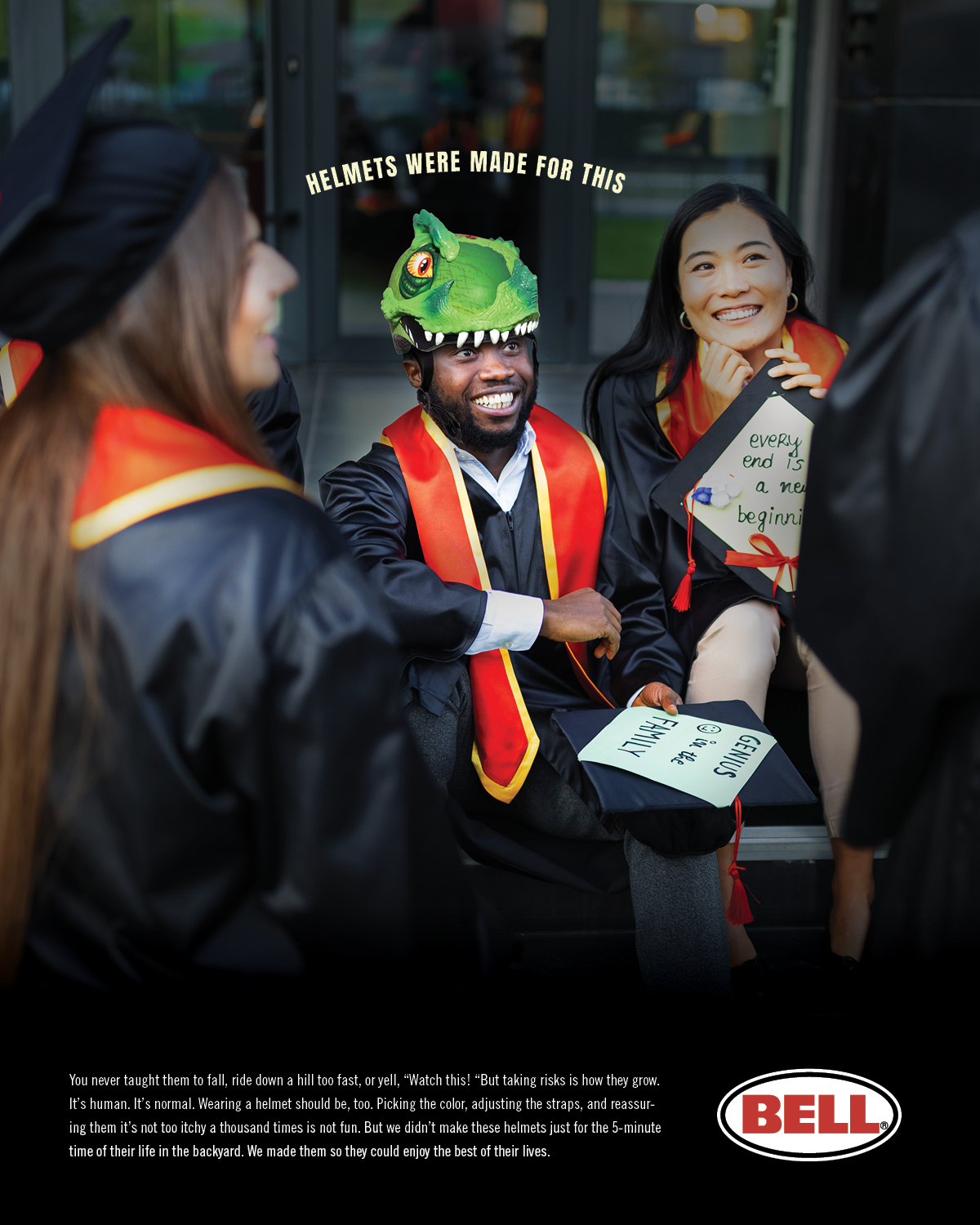 Kids aren’t fans of wearing helmets, but it’s a small thing that can save lives. This print campaign concept for Bell helmets was made to remind parents and kids that helmets don’t just keep you safe in the moment. They protect your future self, too, by ensuring you’re able to experience all that life has to offer as you grow up.